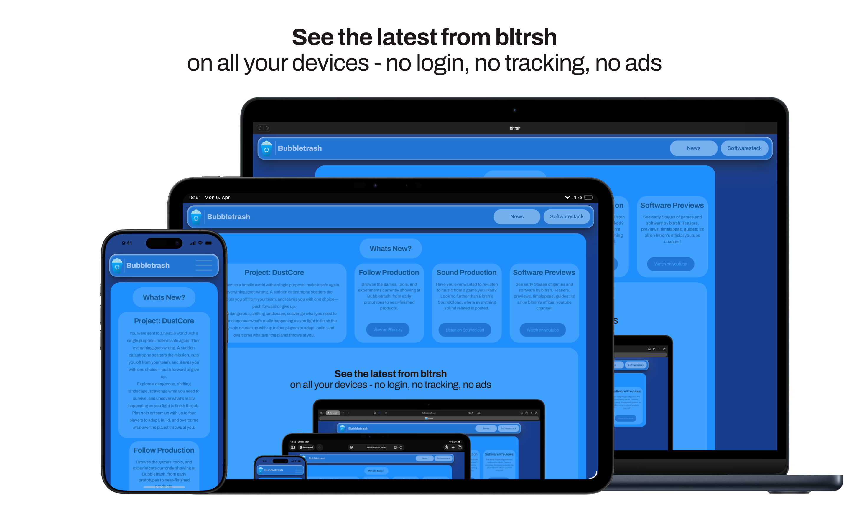 Browse the games, tools, and experiments currently showing at Bubbletrash, from early prototypes to near-finished products.
